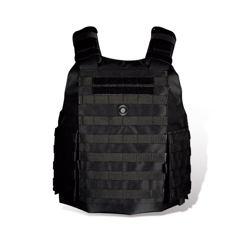 Funda Molle Antibalas confeccionada en tela y cordura importada de alta resistencia, con múltiples ojales para municiones y aplique en pecho y espalda para soporte de insignias o escudos.
