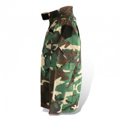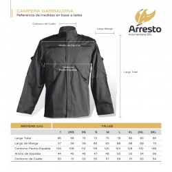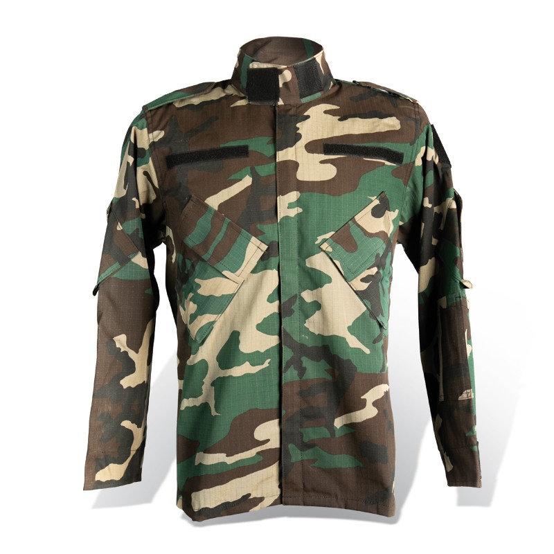 Garibaldina Swat Camuflada confeccionada con tela anti desgarro Rip Stop, 4 bolsillos externos, abrigo interior de matelasse desmontable y con aplique para soporte de escudo en brazo y pecho.